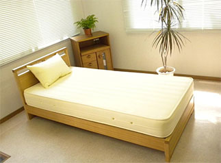 日本国内の工場で一つひとつ丁寧に製造しているベーシックベッドはシンプルな佇まいが人気の脚付マットレスです。