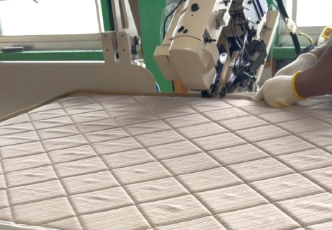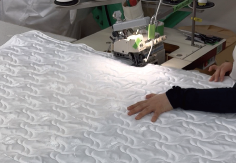 バネ止め工程で作られた製品の元を、専用のミシンを使い、まわりを縫い製品を仕上げます。