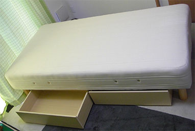 4つのサイズから選べるベッド脚付きで組み立ても簡単です。